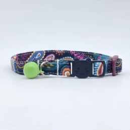Black Paisley Patterned Fabric Cat Collar