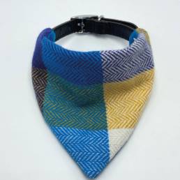 Blue & Yellow Herringbone Check 100% Wool Dog Bandana
