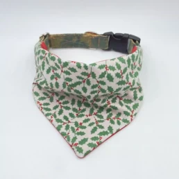 White Fabric With Green Holly Print Dog Bandana