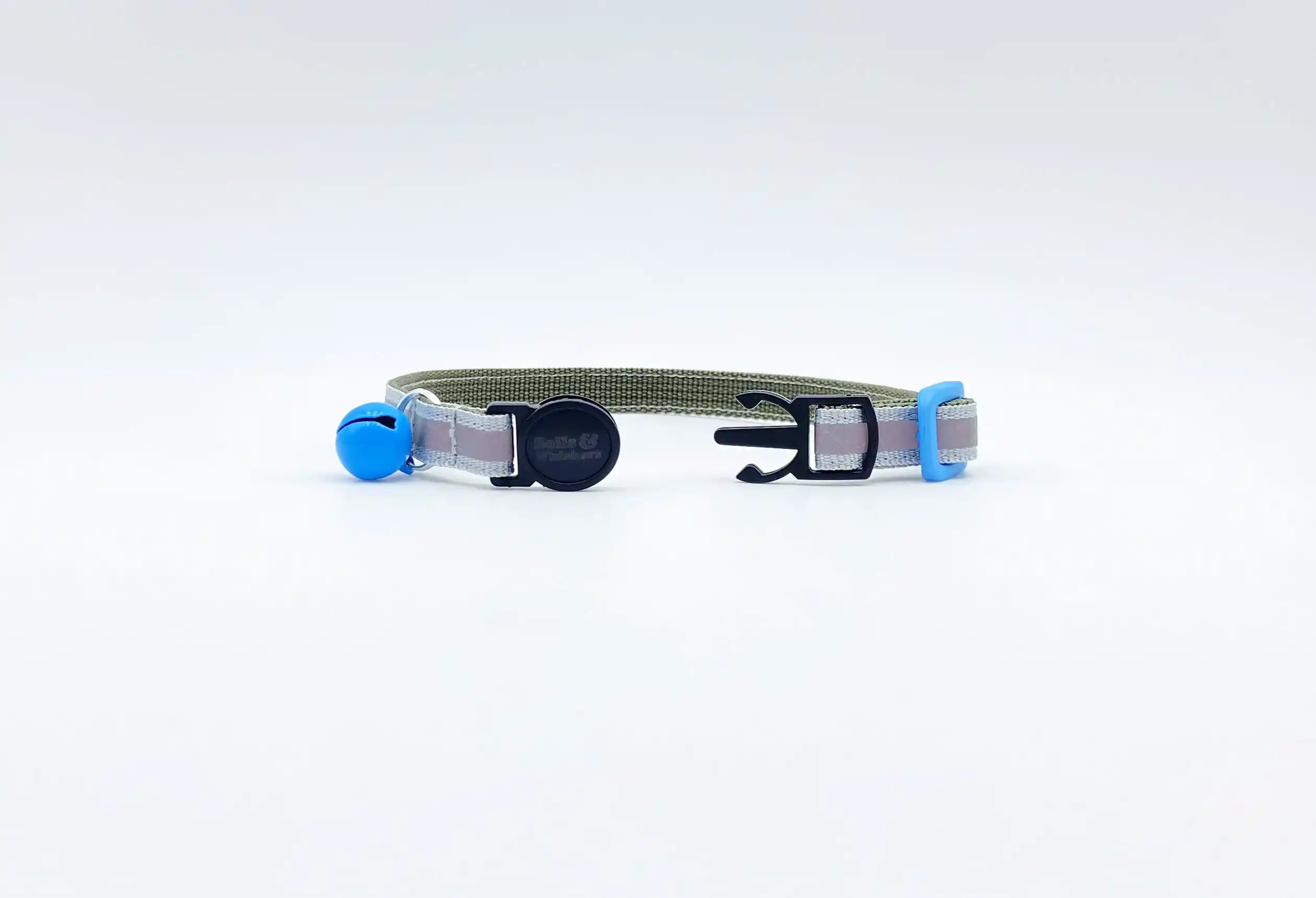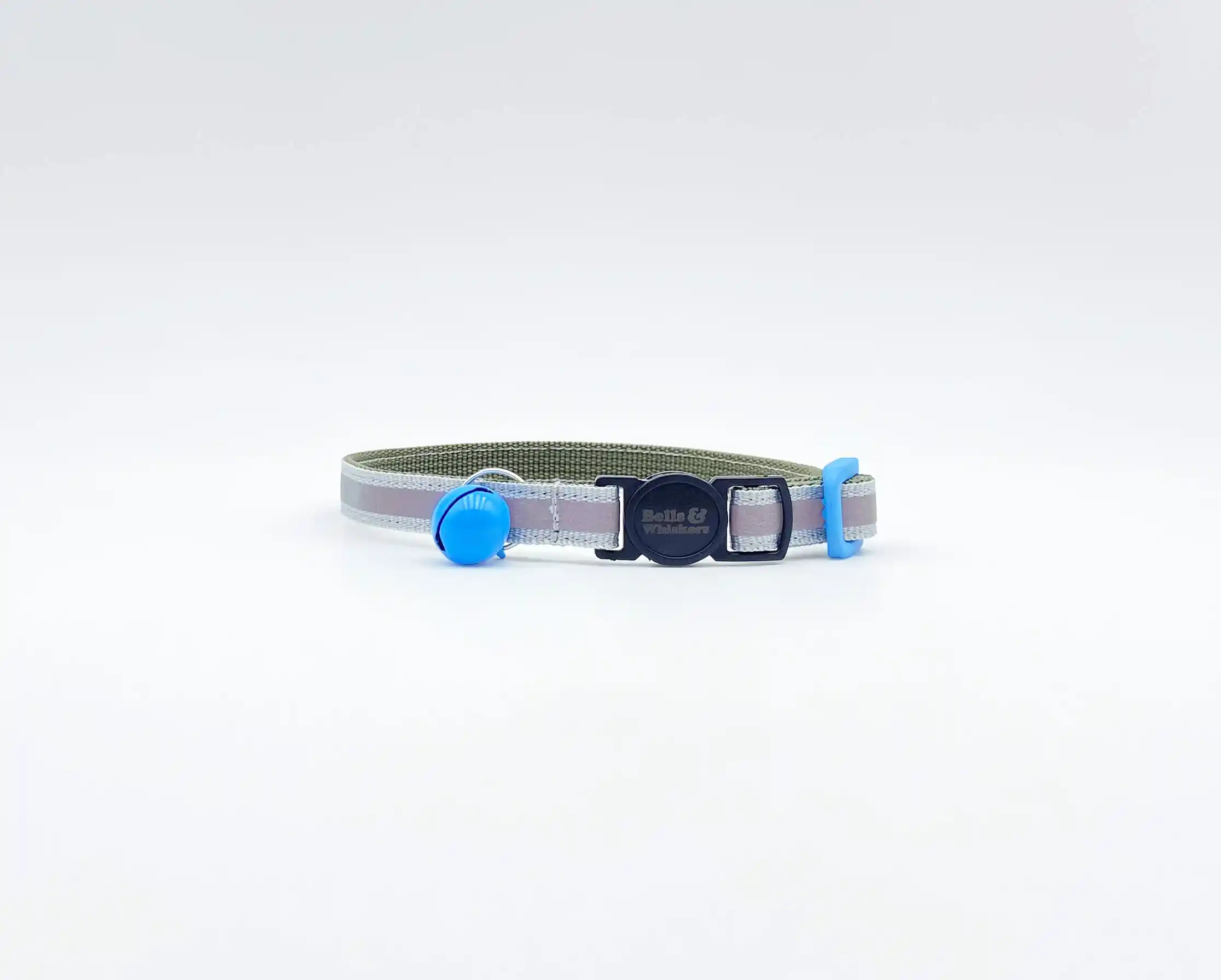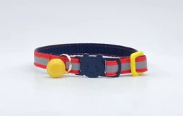 High visibility reflective high quality tape on blue Nylon webbing flexible cat collar – great for dark mornings and evenings!