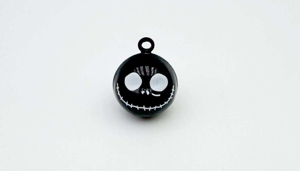 Cat or dog small Halloween smiley face jingle bell charm with stainless steel split ring