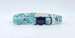 100% Cotton cat collar with green leaf and pink lower design