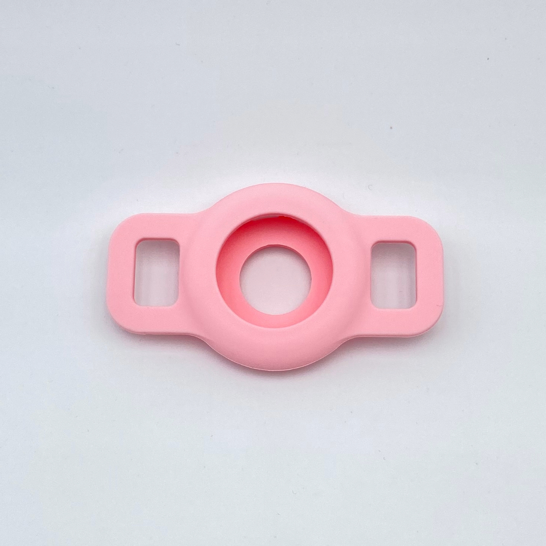This super soft Pink silicone holder is perfect for attaching an AirTag to our standard fabric & velvet cat collars.